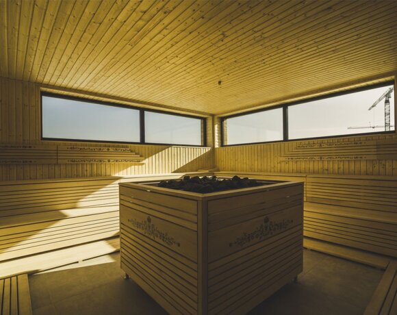 Sauna sucha, w której jedna ze ścian została wykonana z brył solnych z morza martwego. Dzięki niższej temperaturze również osoby z wysokim ciśnieniem i skórą naczynkową mogą z niej korzystać. Zastosowanie brył halitu pozwala skórze absorbować cenne minerały znajdujące się w soli: jod, brom, wapń, czy magnez. Pierwiastki te odgrywają istotną rolę w profilaktyce zapalenia gardła, krtani, oskrzeli i płuc, a także w alergii.