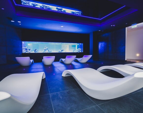 Wypoczywania z widokiem na piękne akwarium rafowe to unikatowy sposób na odpoczynek. Wyjątkowa przestrzeń zapewnia totalny relaks po każdym cyklu saunowym.